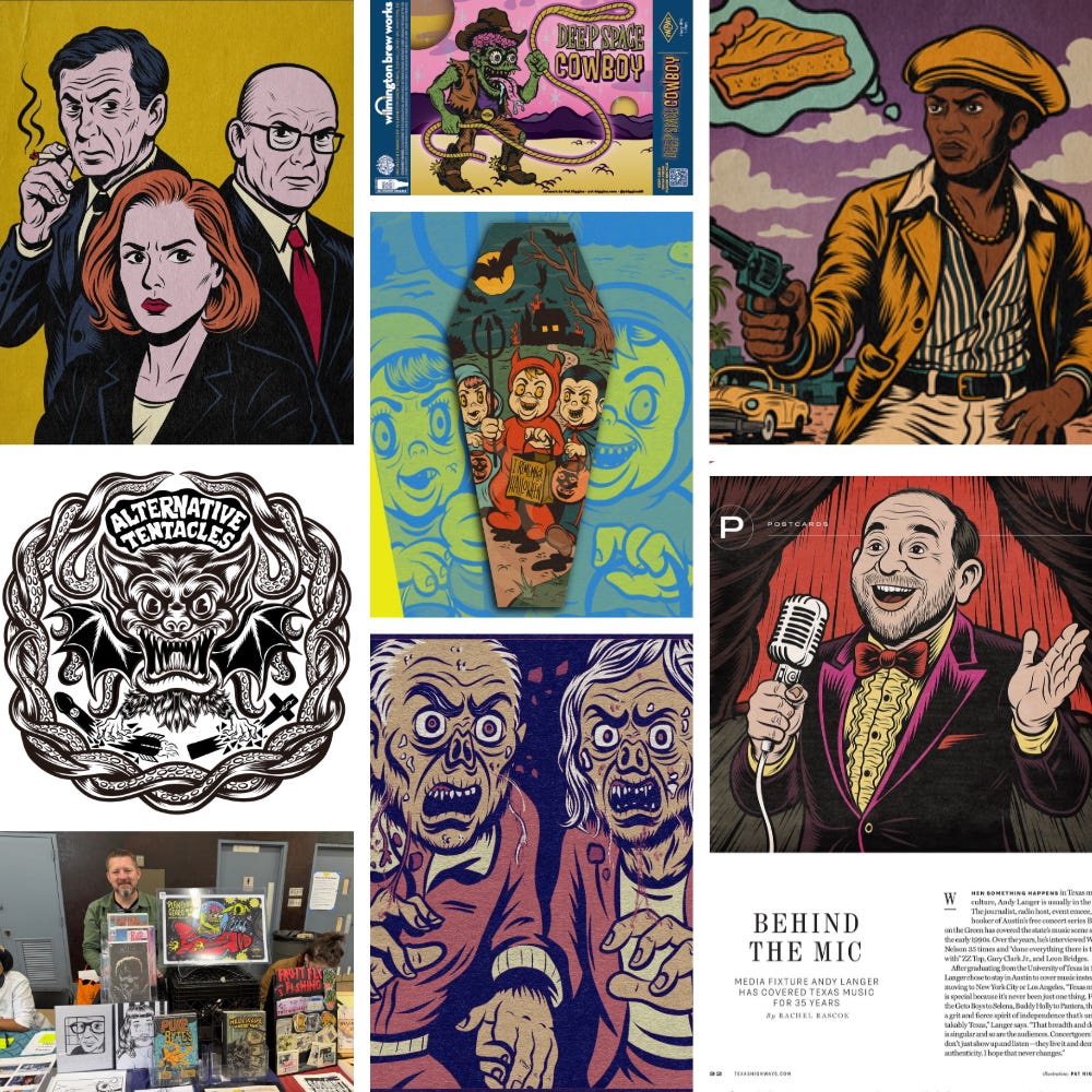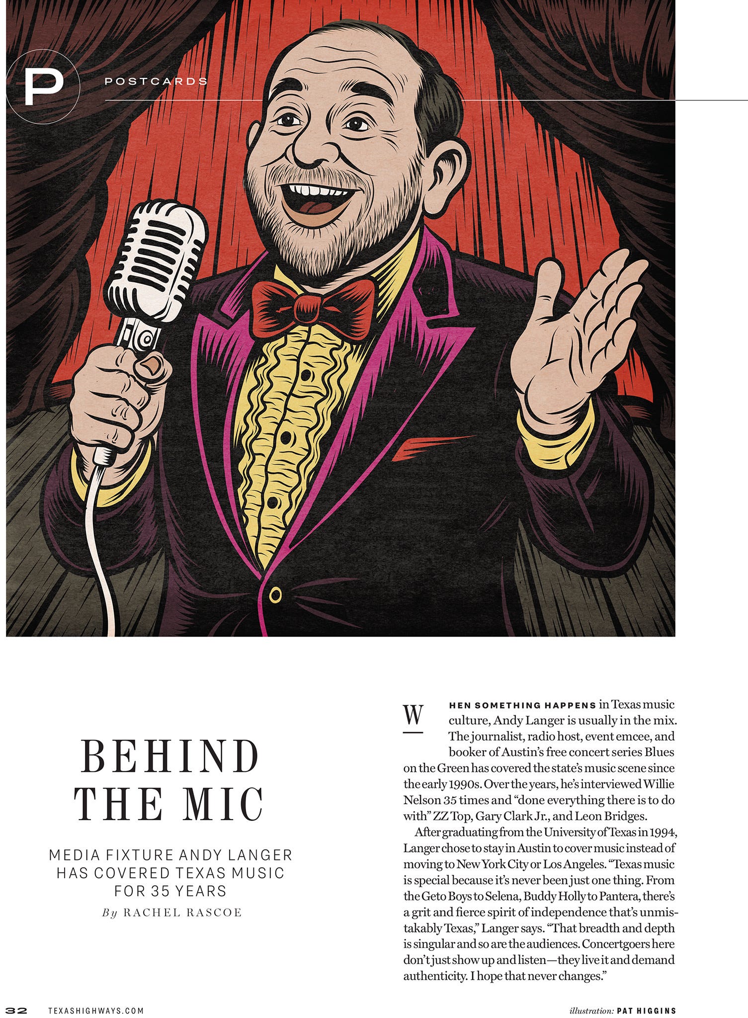 One of the highlights of the year was doing illustration work for Texas Highways, the official travel magazine of Texas. I didn’t get too weird with it, but I was still able to bring my voice to the page with a fun caricature of a dude who’s been a fixture in the Texas music scene for over 35 years.